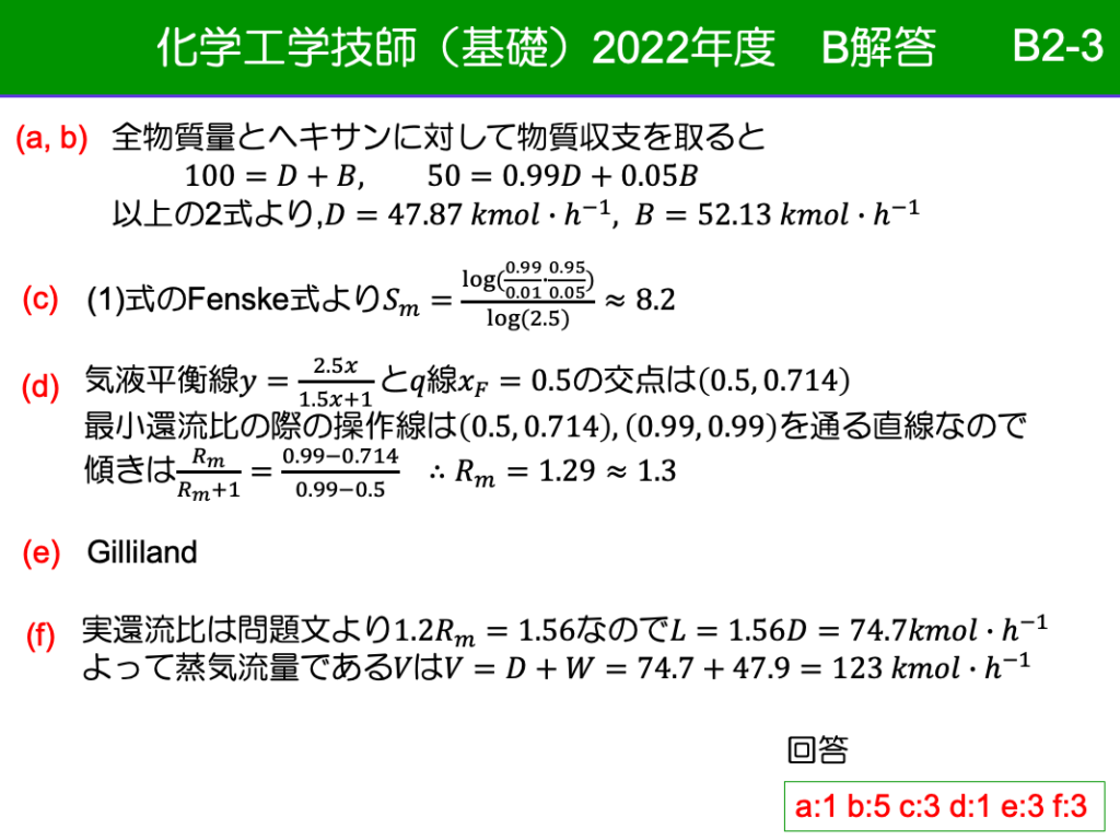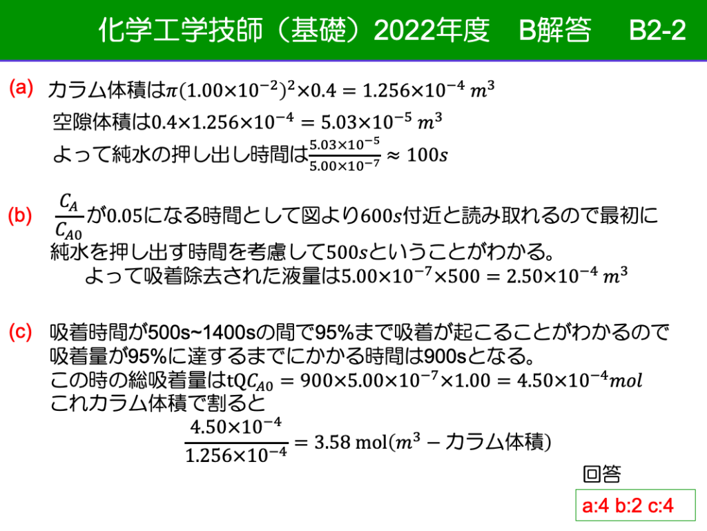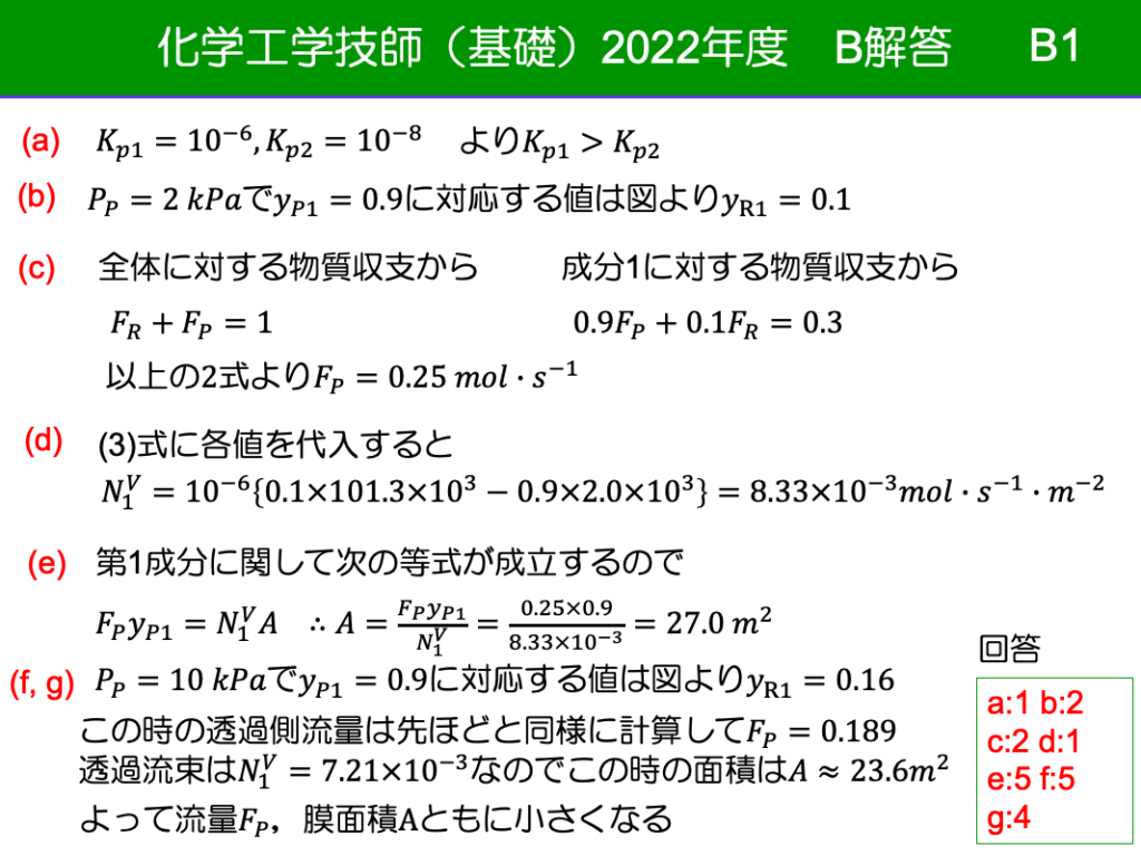 本記事では化学工学技師(基礎)2022年度B問題についての解説を行っています。