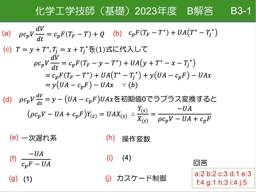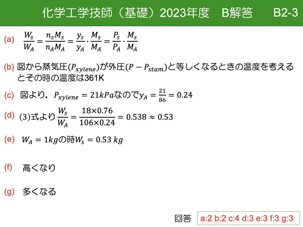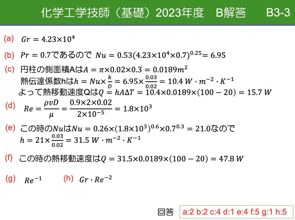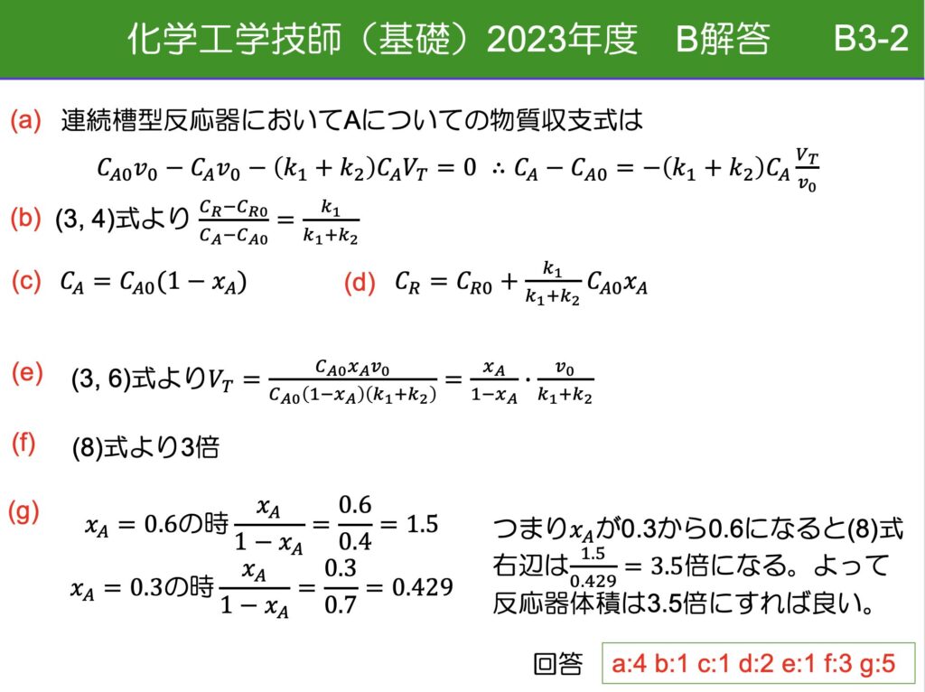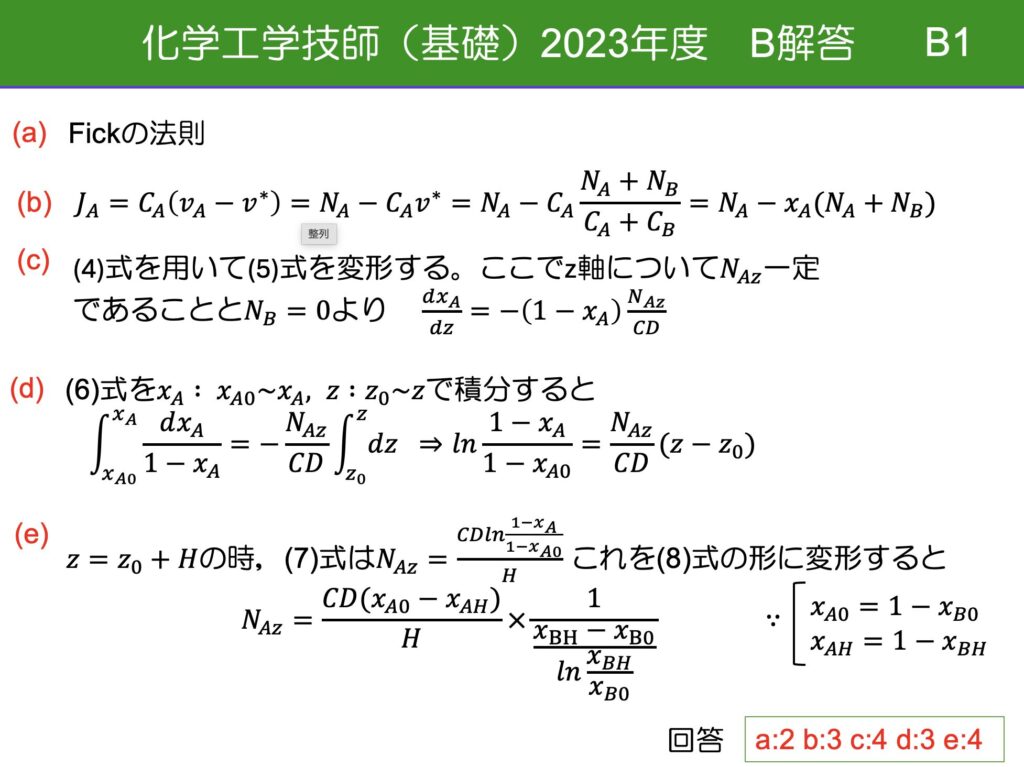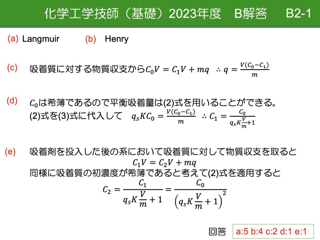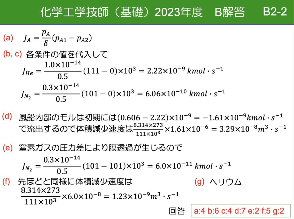 本記事では化学工学技師(基礎)2023年度B問題についての解説を行っています。